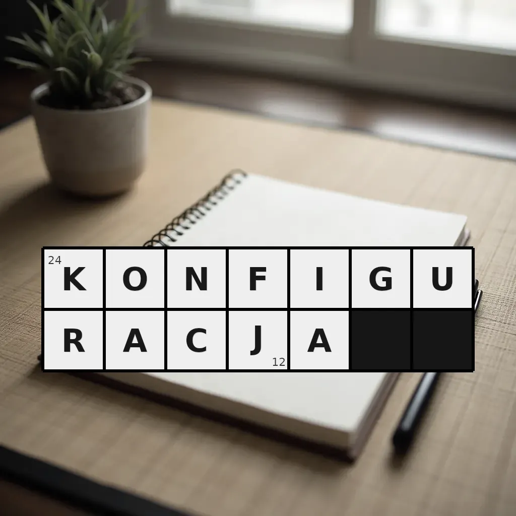 Słowo „konfiguracja” ma 12 znaków (bez spacji i łączników).