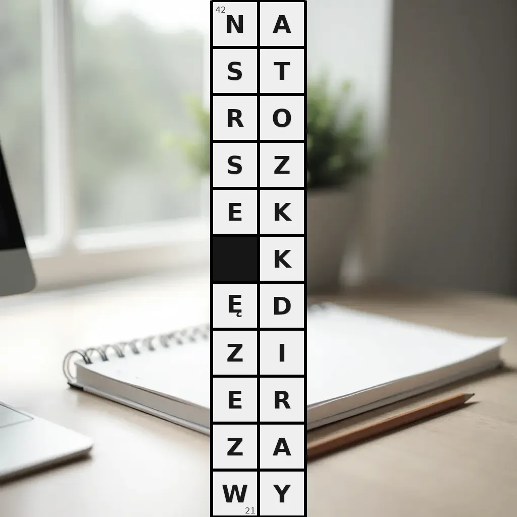 Słowo „nastroszek kędzierzawy” ma 21 znak (bez spacji i łączników).