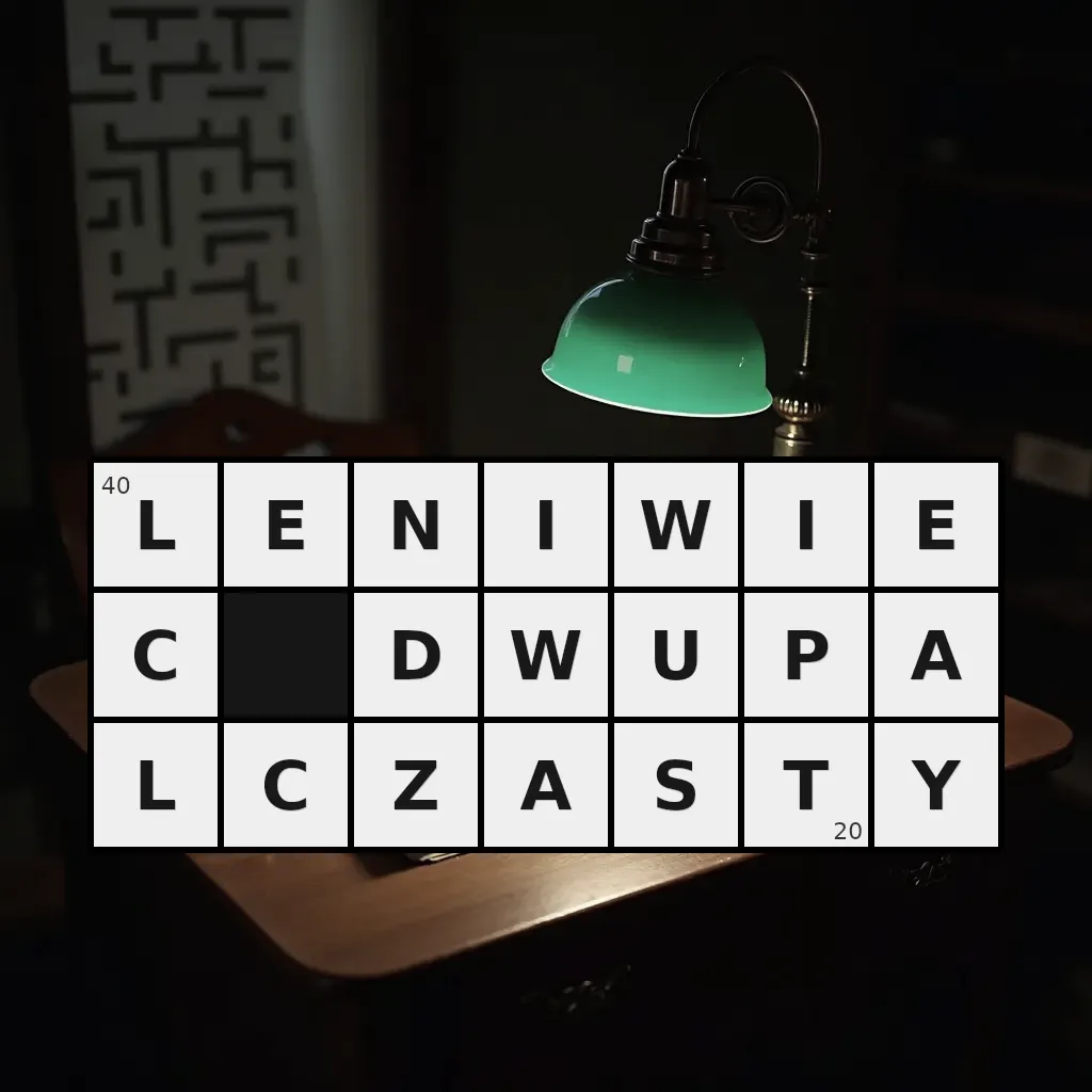 Słowo „leniwiec dwupalczasty” ma 20 znaków (bez spacji i łączników).