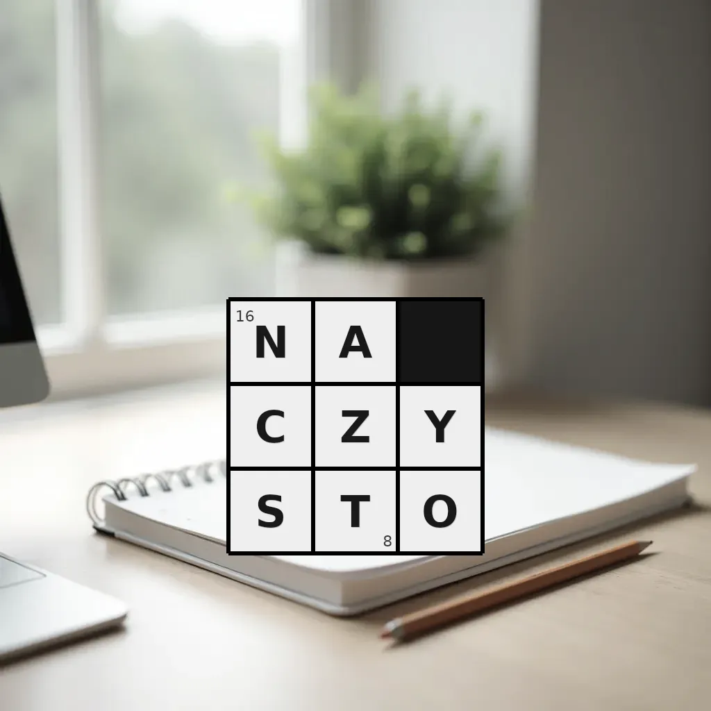 Słowo „na czysto” ma 8 znaków (bez spacji i łączników).