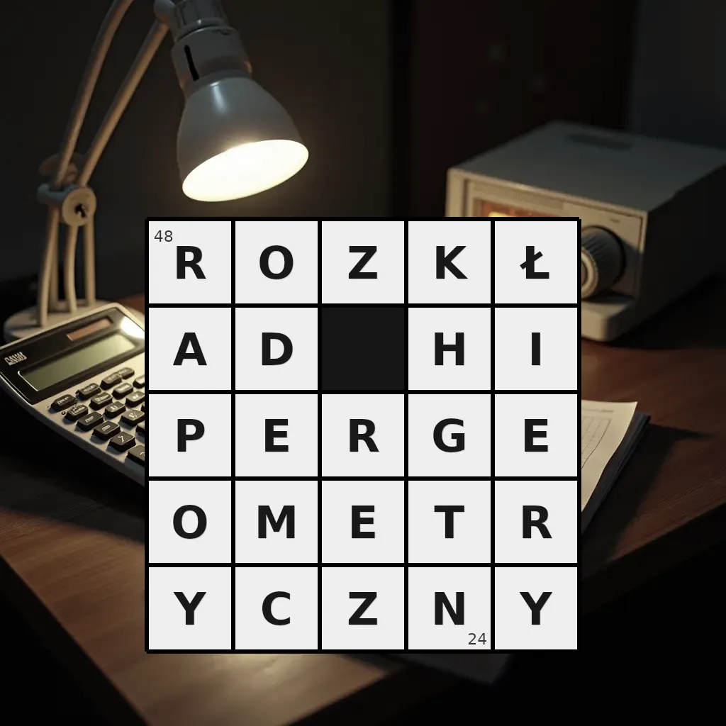 Słowo „rozkład hipergeometryczny” ma 24 znaki (bez spacji i łączników).