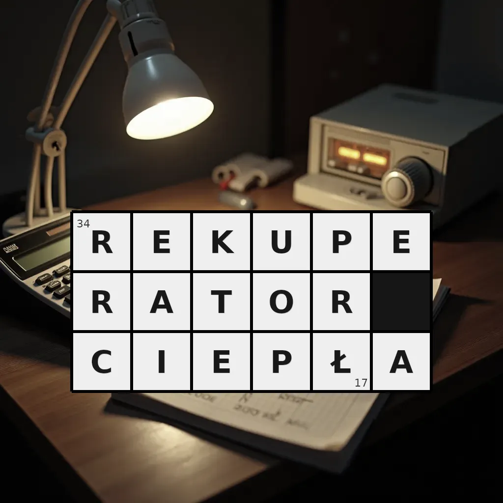 Słowo „rekuperator ciepła” ma 17 znaków (bez spacji i łączników).
