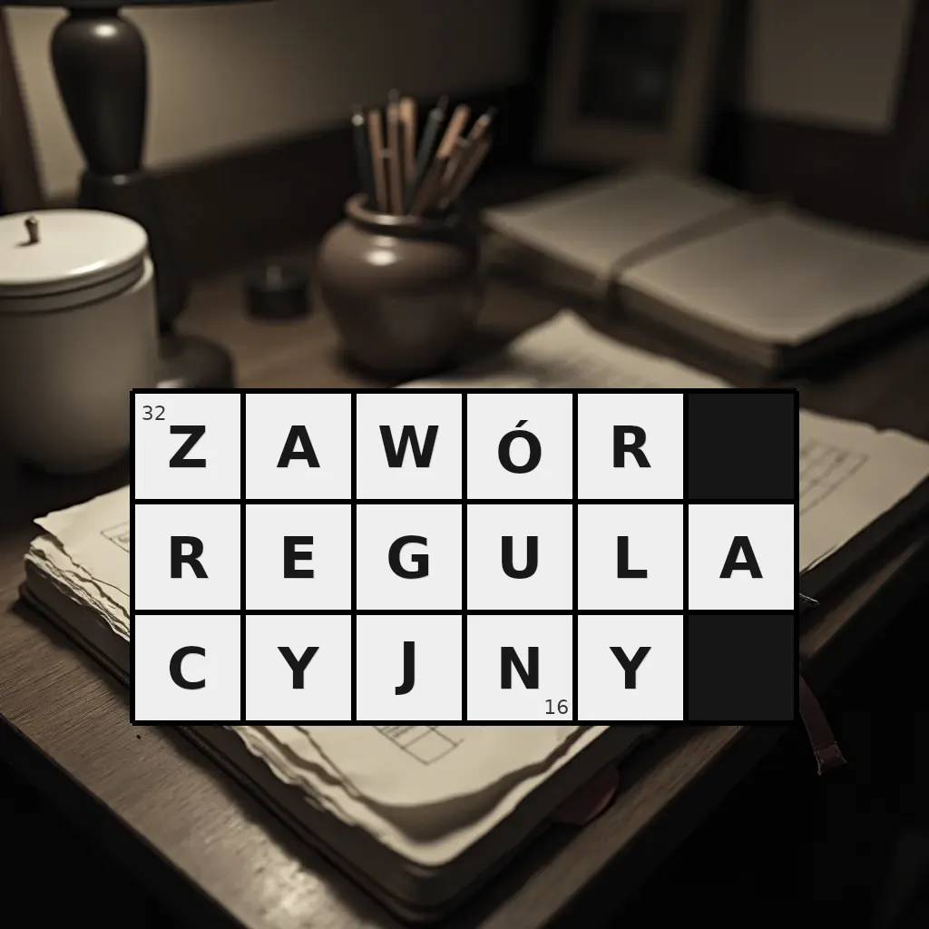 Słowo „zawór regulacyjny” ma 16 znaków (bez spacji i łączników).
