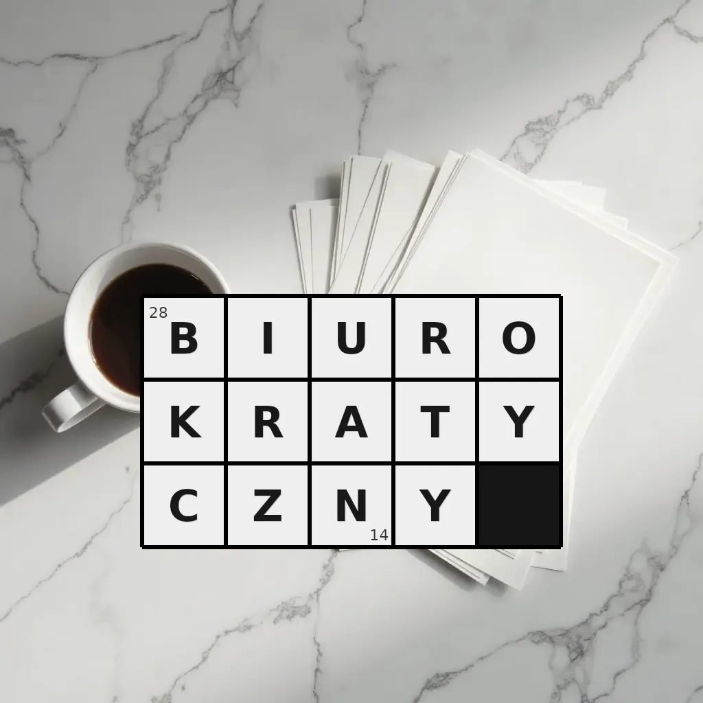 Słowo „biurokratyczny” ma 14 znaków (bez spacji i łączników).
