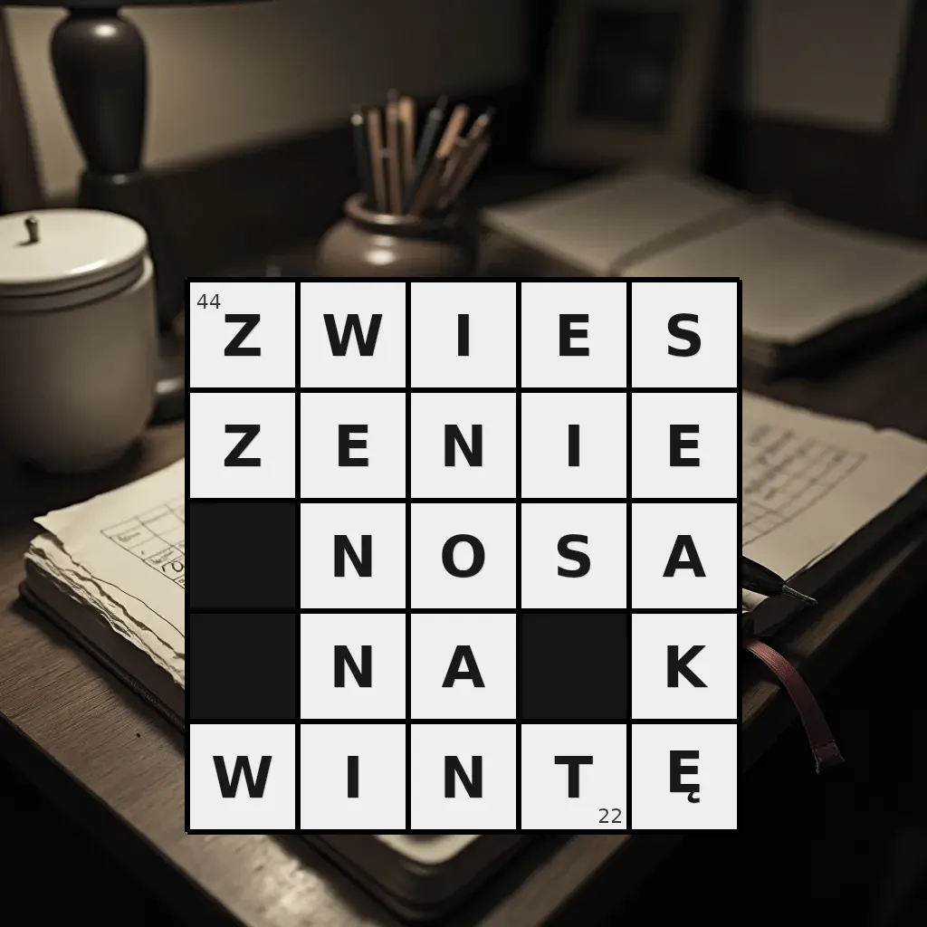 Słowo „zwieszenie nosa na kwintę” ma 22 znaki (bez spacji i łączników).