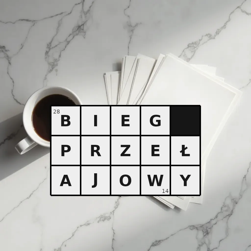 Słowo „bieg przełajowy” ma 14 znaków (bez spacji i łączników).