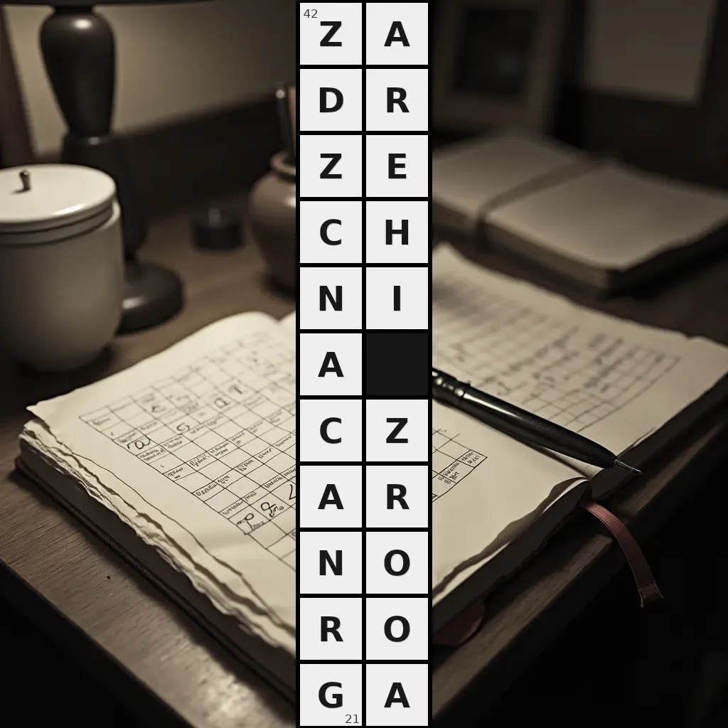 Zawiera litery: A, A, A, A, C, C, D, E, G, H, I, N, N, O, O, R, R, R, Z, Z, Z