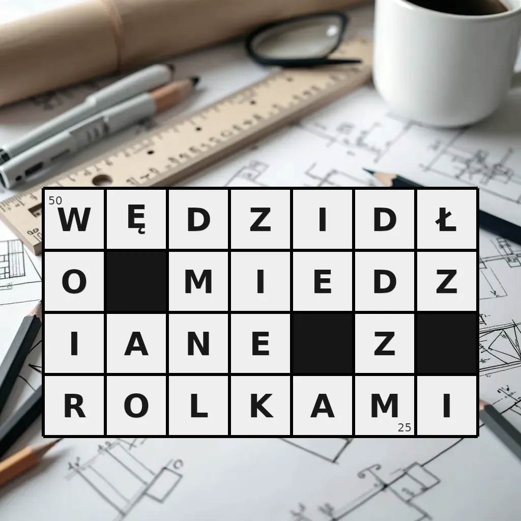 Słowo „wędzidło miedziane z rolkami” ma 25 znaków (bez spacji i łączników).