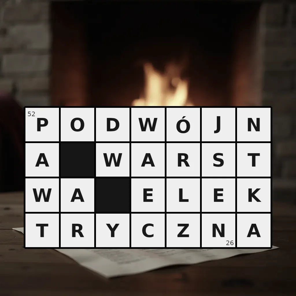 Słowo „podwójna warstwa elektryczna” ma 26 znaków (bez spacji i łączników).