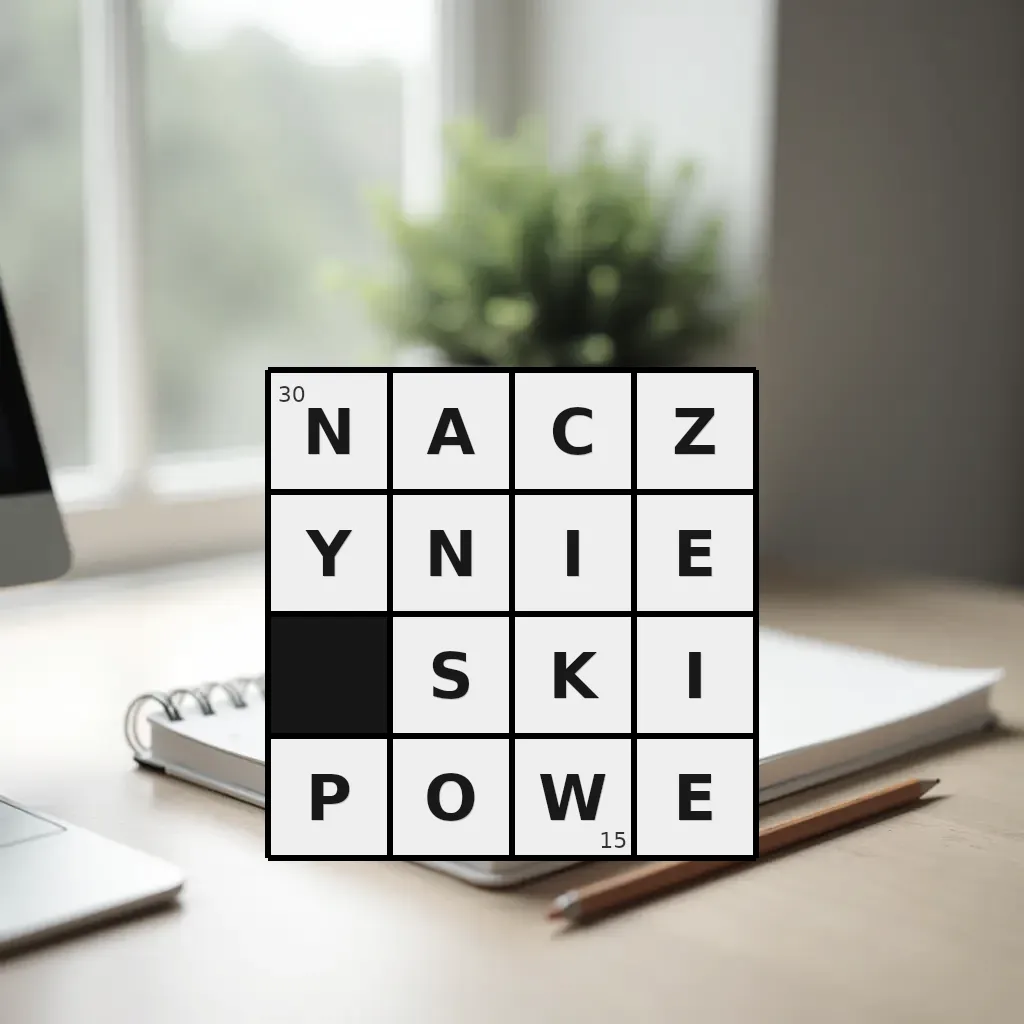 Słowo „naczynie skipowe” ma 15 znaków (bez spacji i łączników).