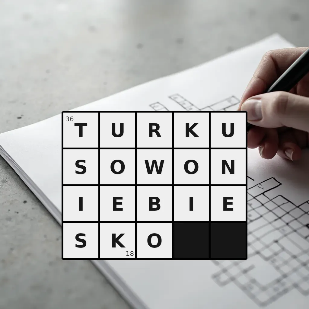 Zawiera litery: B, E, E, I, I, K, K, N, O, O, O, R, S, S, T, U, U, W