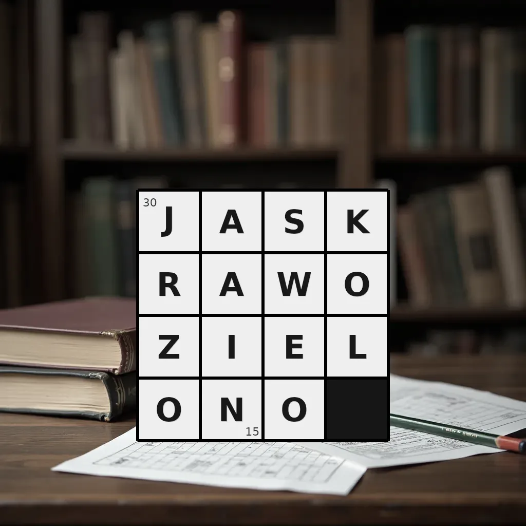 Jaka jest najtrafniejsza odpowiedź na hasło „w kolorze zielonym o jaskrawym odcieniu”?