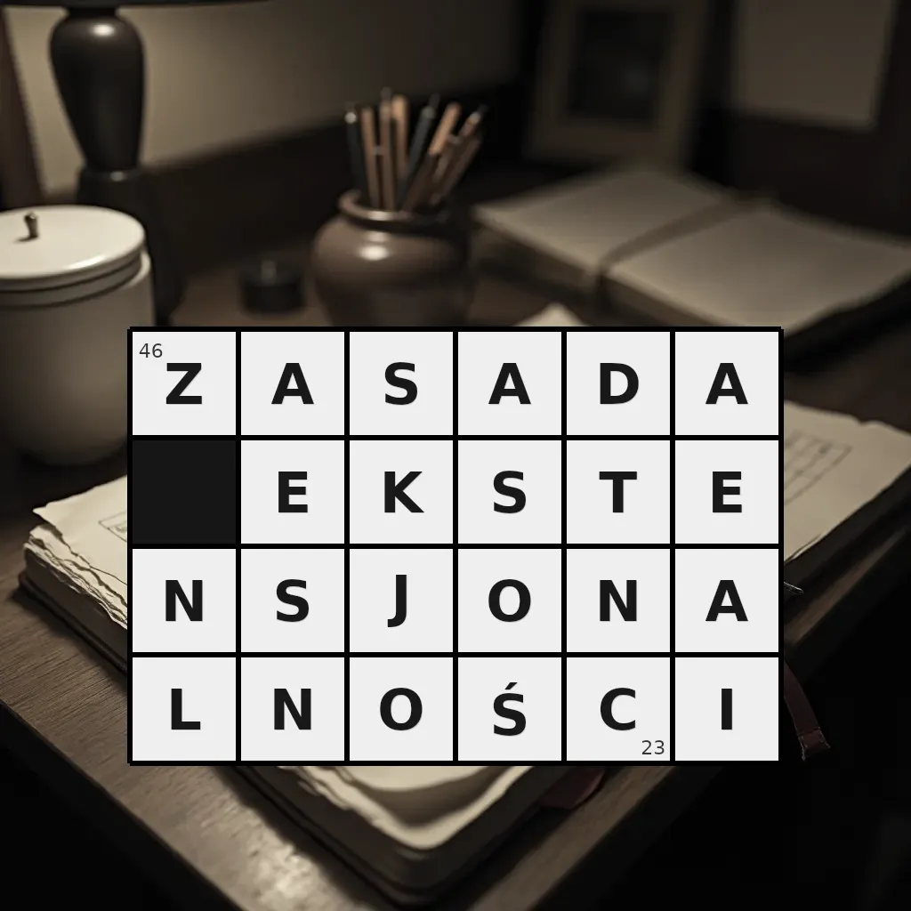Słowo „zasada ekstensjonalności” ma 23 znaki (bez spacji i łączników).