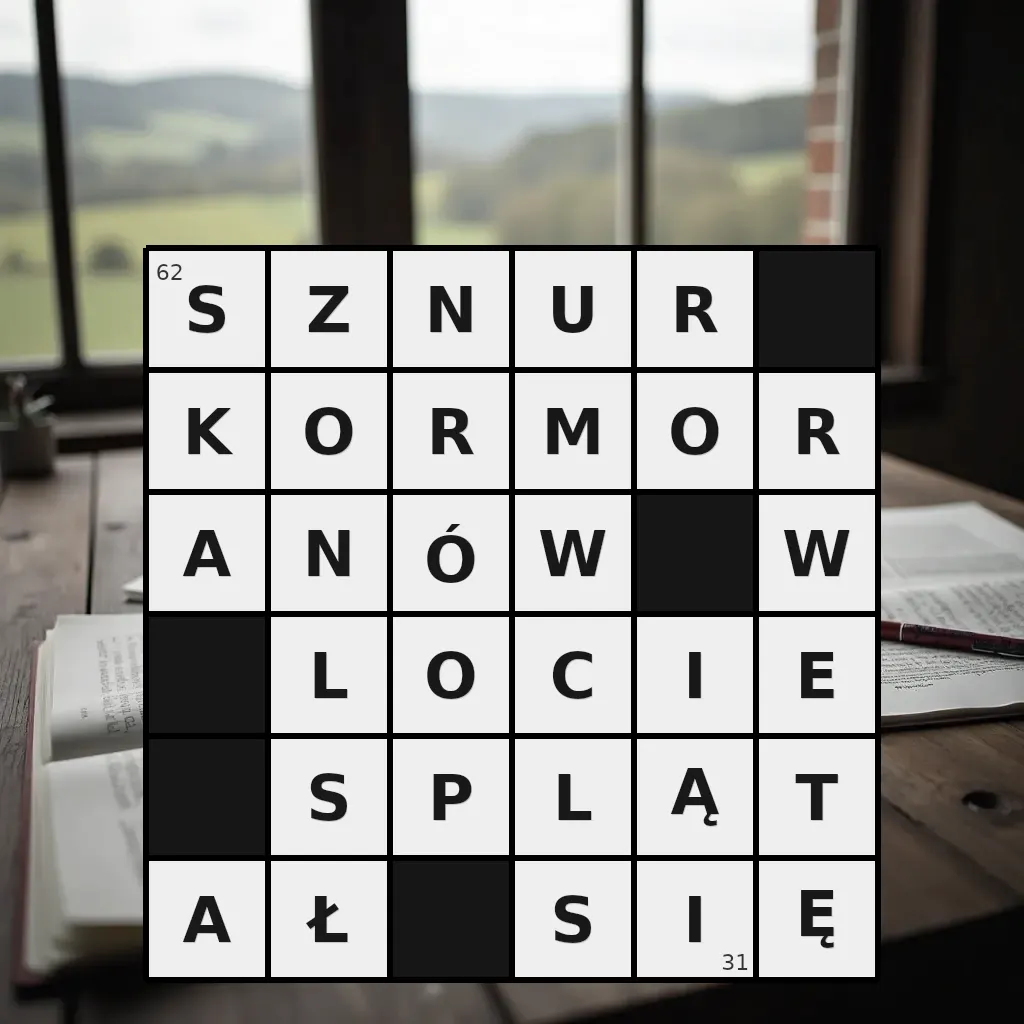 Słowo „sznur kormoranów w locie splątał się” ma 31 znak (bez spacji i łączników).