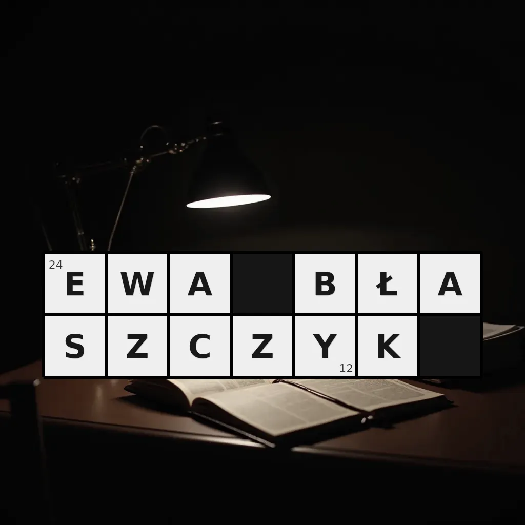 Słowo „ewa błaszczyk” ma 12 znaków (bez spacji i łączników).