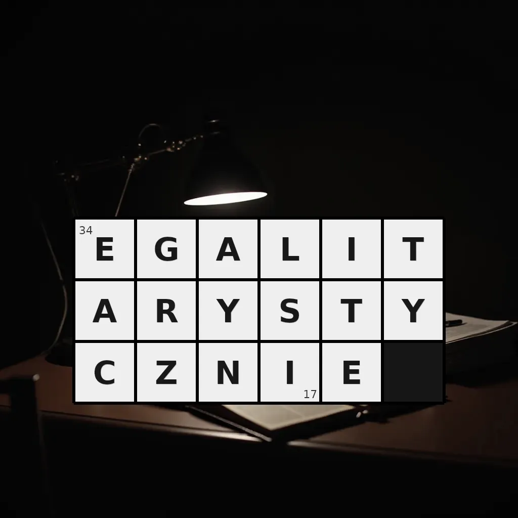 Słowo „egalitarystycznie” ma 17 znaków (bez spacji i łączników).