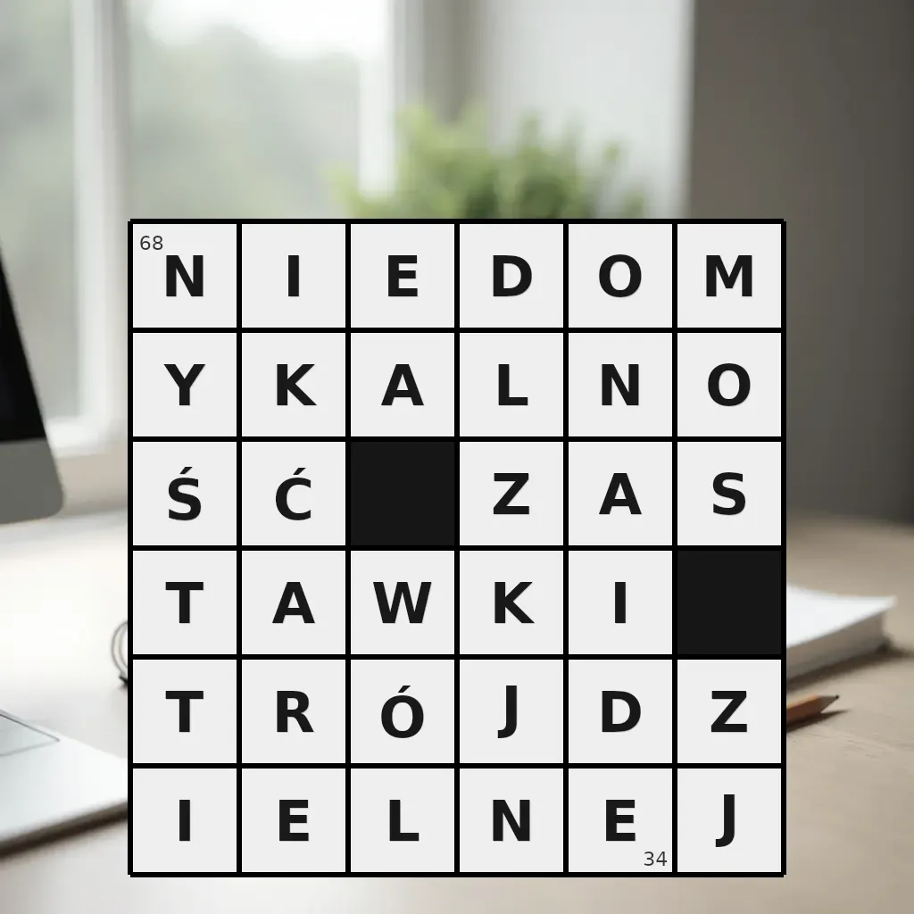 Zawiera litery: A, A, A, D, D, E, E, E, I, I, I, J, J, K, K, L, L, M, N, N, N, O, O, R, S, T, T, W, Y, Z, Z, Ó, Ć, Ś