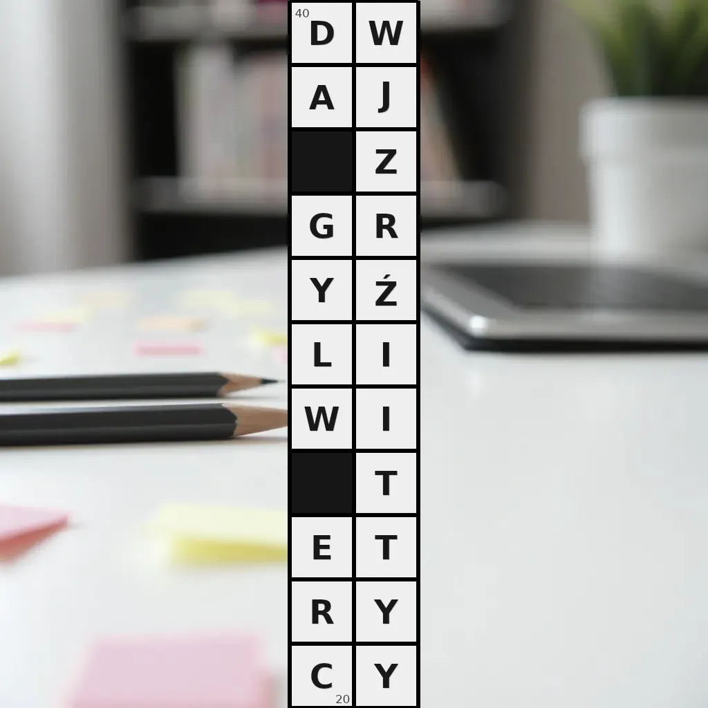 Zawiera litery: A, C, D, E, G, I, I, J, L, R, R, T, T, W, W, Y, Y, Y, Z, Ź