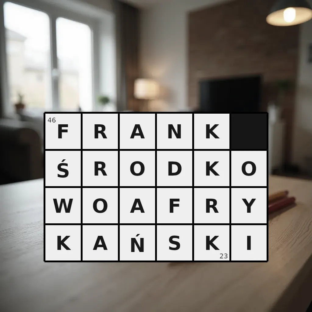 Zawiera litery: A, A, A, D, F, F, I, K, K, K, K, N, O, O, O, R, R, R, S, W, Y, Ń, Ś