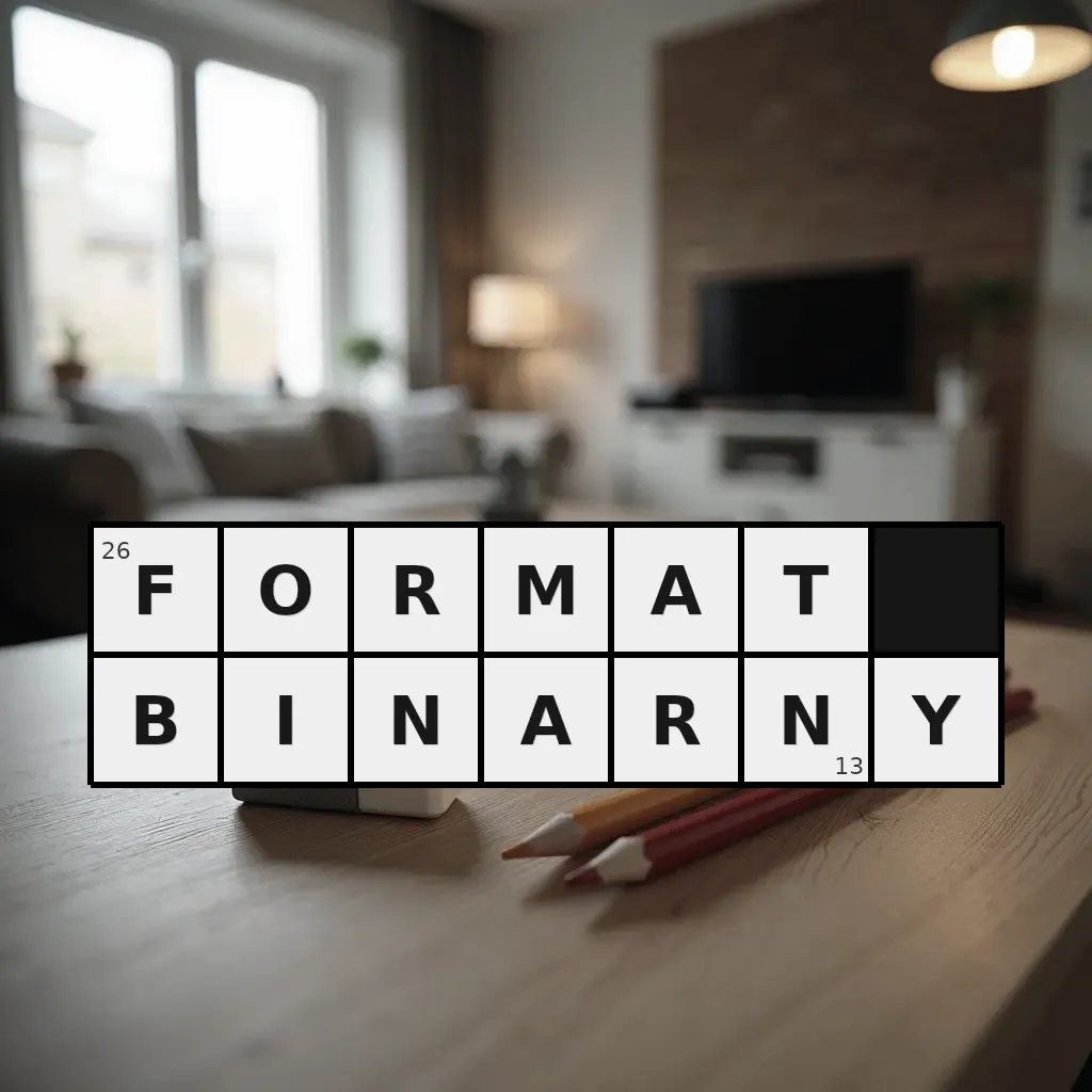 Słowo „format binarny” ma 13 znaków (bez spacji i łączników).