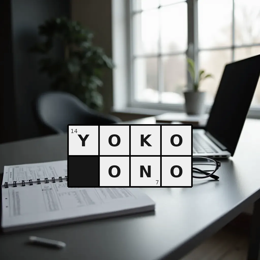Słowo „yoko ono” ma 7 znaków (bez spacji i łączników).