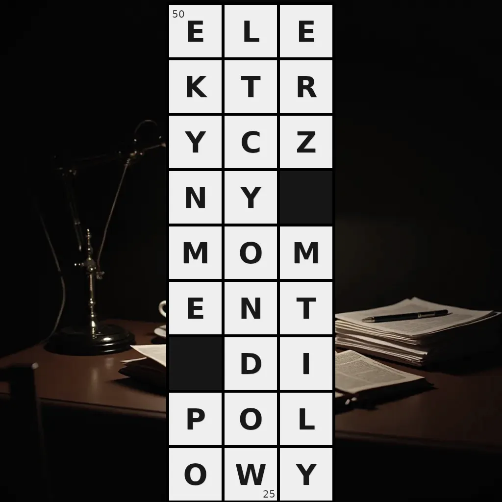 Słowo „elektryczny moment dipolowy” ma 25 znaków (bez spacji i łączników).
