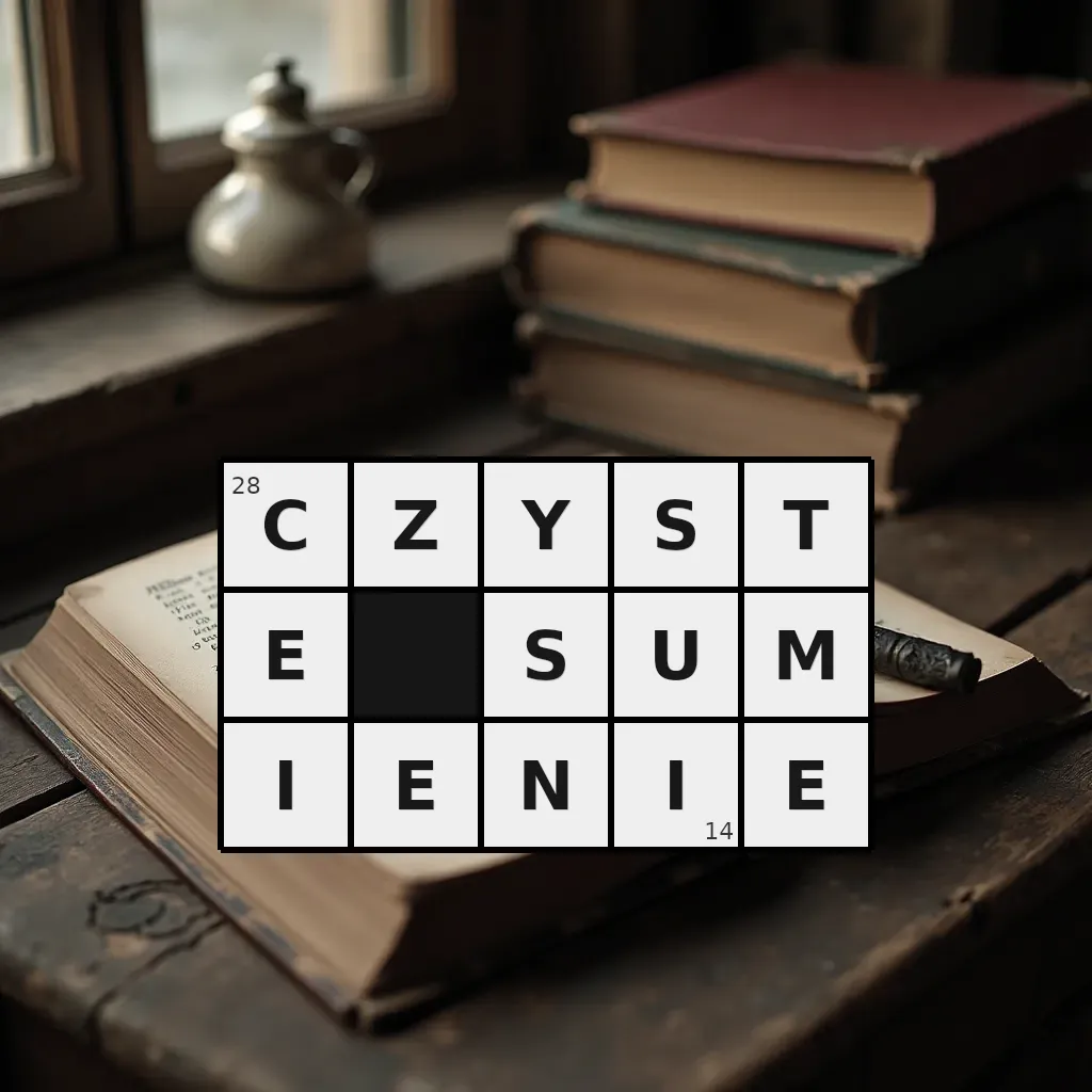 Słowo „czyste sumienie” ma 14 znaków (bez spacji i łączników).