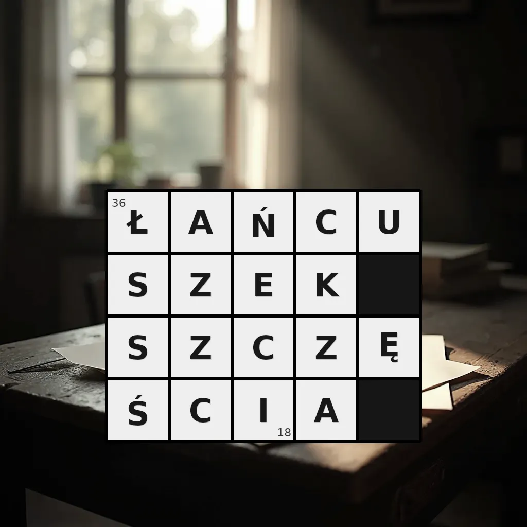 Słowo „łańcuszek szczęścia” ma 18 znaków (bez spacji i łączników).