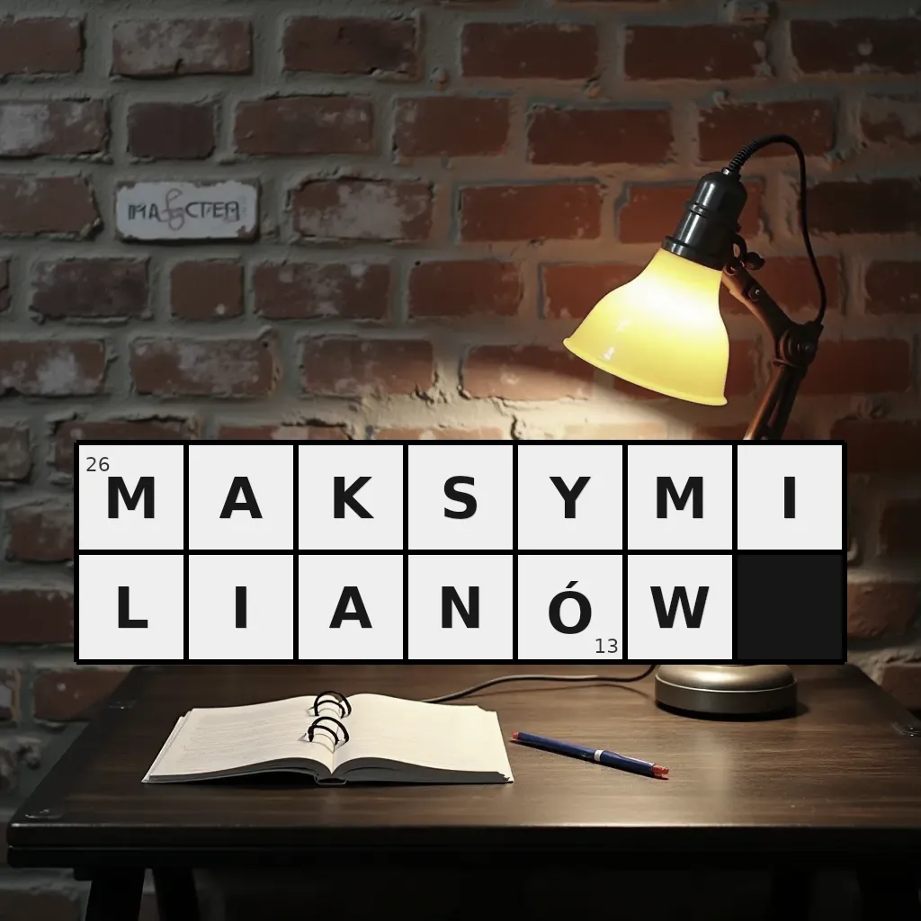 Słowo „maksymilianów” ma 13 znaków (bez spacji i łączników).