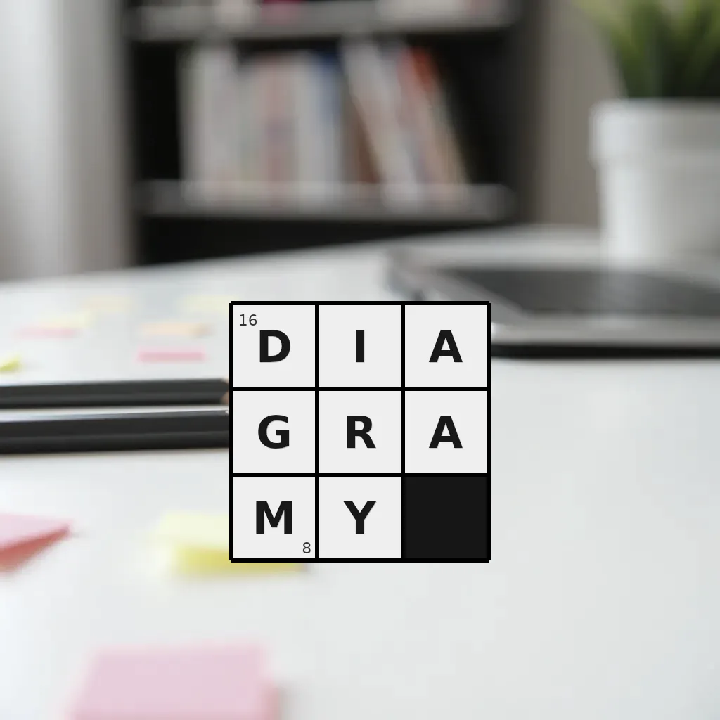Słowo „diagramy” ma 8 znaków (bez spacji i łączników).