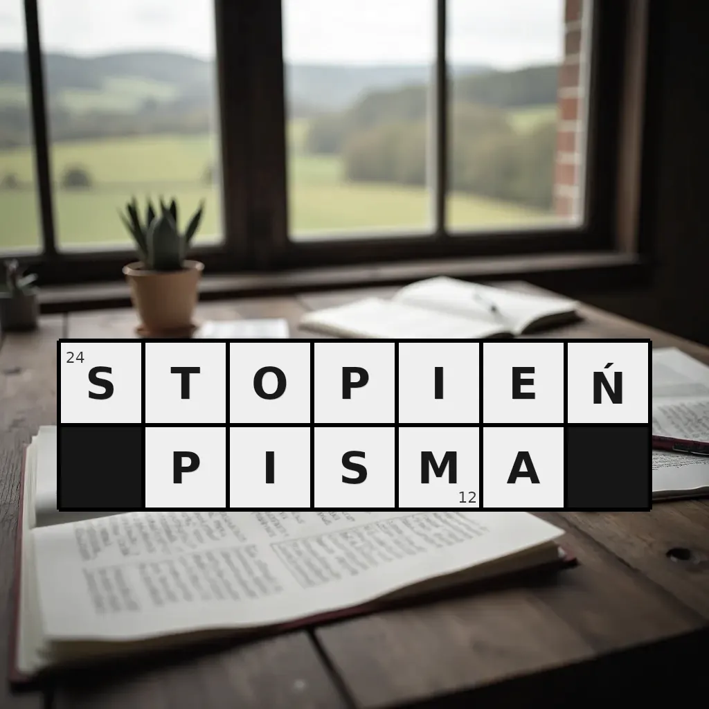 Słowo „stopień pisma” ma 12 znaków (bez spacji i łączników).