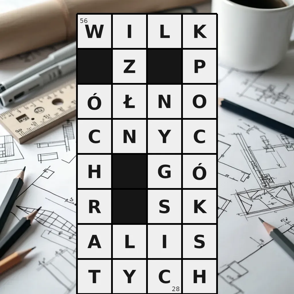 Słowo „wilk z północnych gór skalistych” ma 28 znaków (bez spacji i łączników).