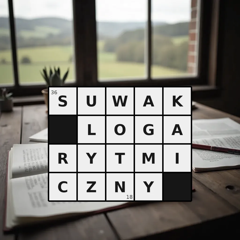Słowo „suwak logarytmiczny” ma 18 znaków (bez spacji i łączników).
