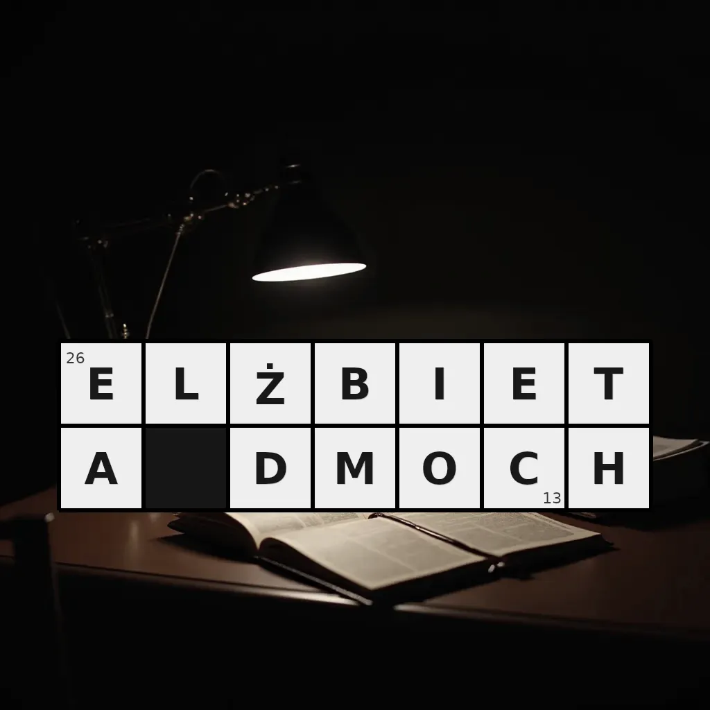 Słowo „elżbieta dmoch” ma 13 znaków (bez spacji i łączników).