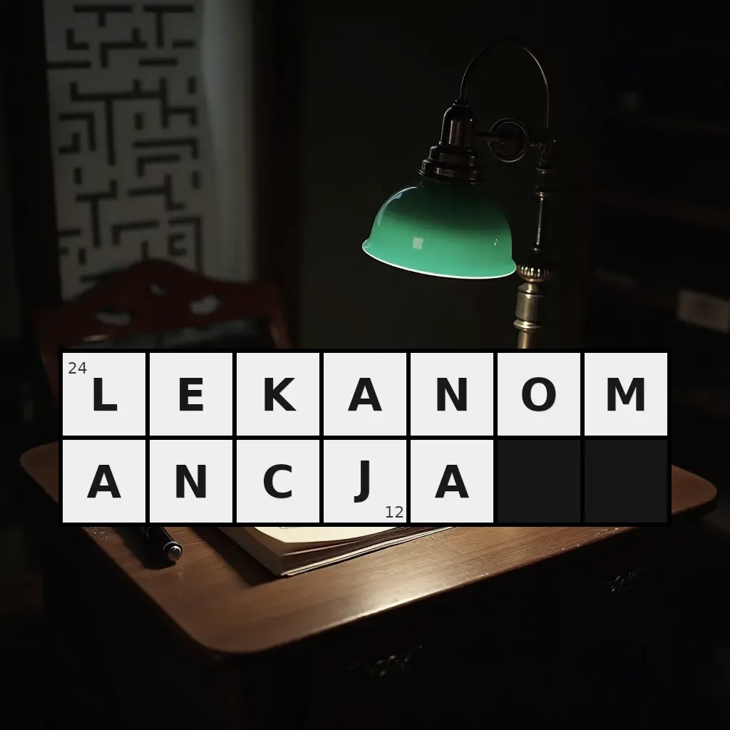 Słowo „lekanomancja” ma 12 znaków (bez spacji i łączników).