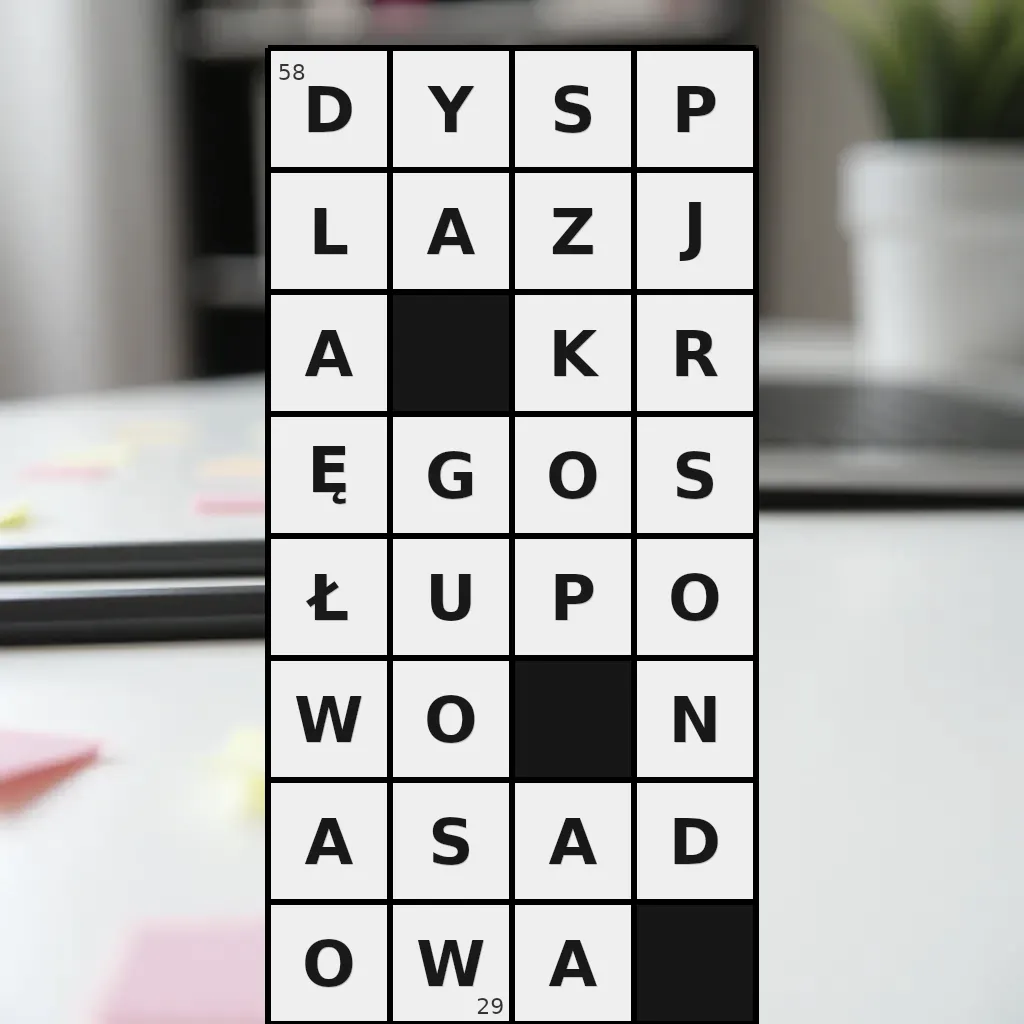 Słowo „dysplazja kręgosłupowo-nasadowa” ma 29 znaków (bez spacji i łączników).