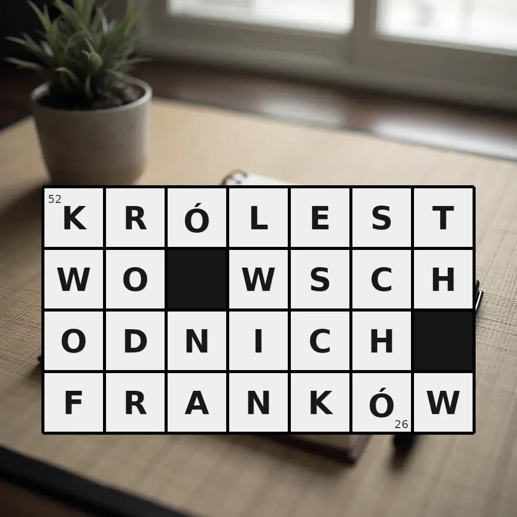 Słowo „królestwo wschodnich franków” ma 26 znaków (bez spacji i łączników).