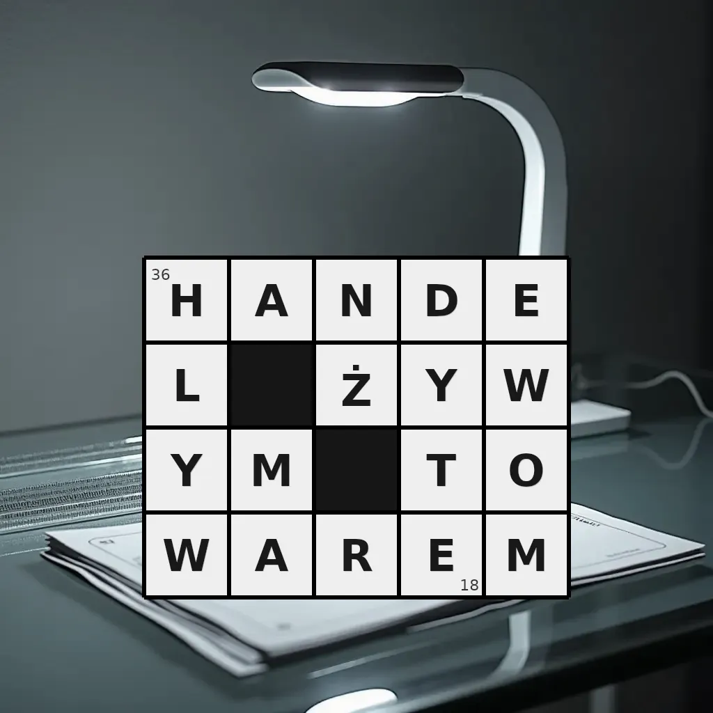 Słowo „handel żywym towarem” ma 18 znaków (bez spacji i łączników).