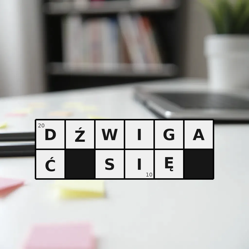 Słowo „dźwigać się” ma 10 znaków (bez spacji i łączników).