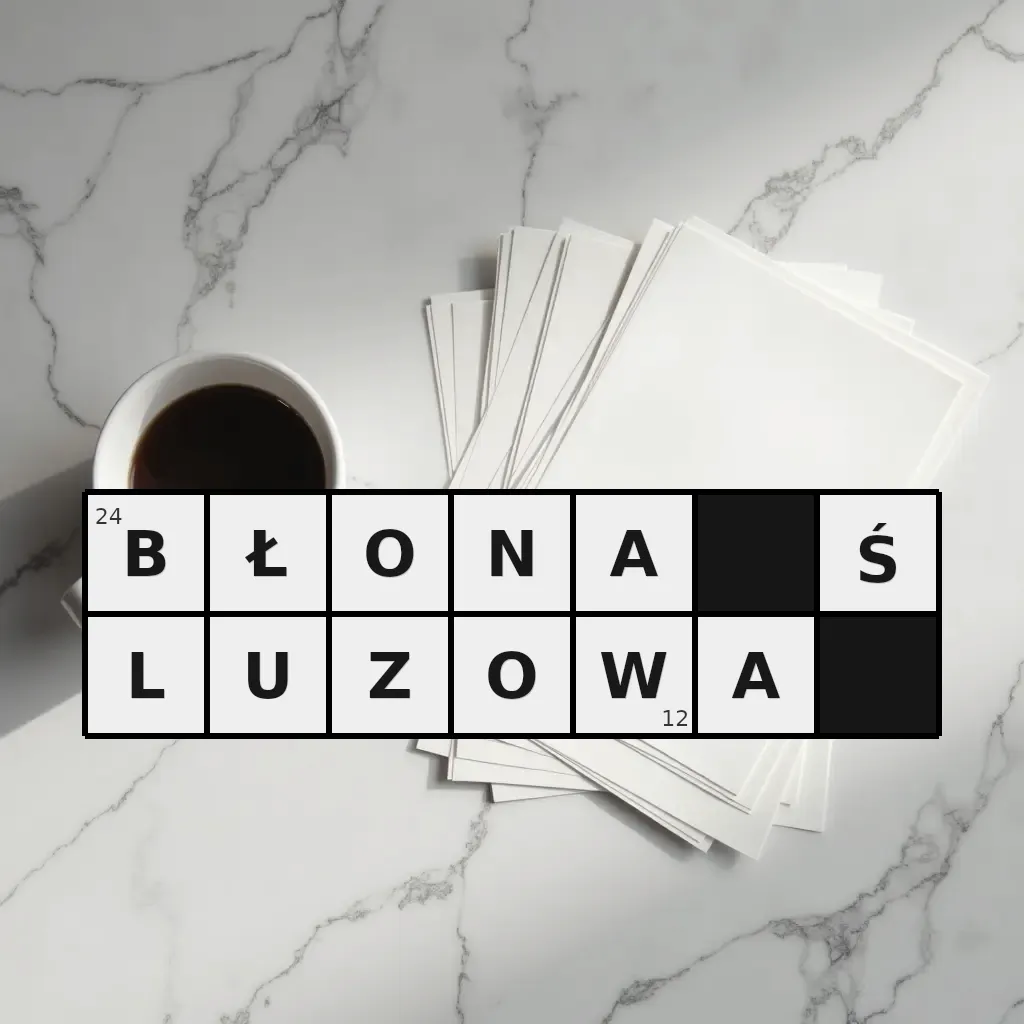 Słowo „błona śluzowa” ma 12 znaków (bez spacji i łączników).