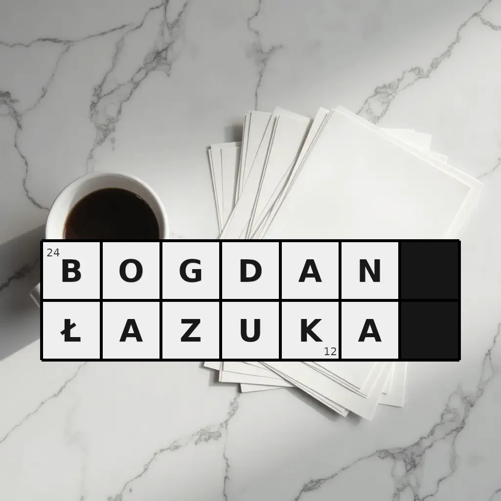 Słowo „bogdan łazuka” ma 12 znaków (bez spacji i łączników).