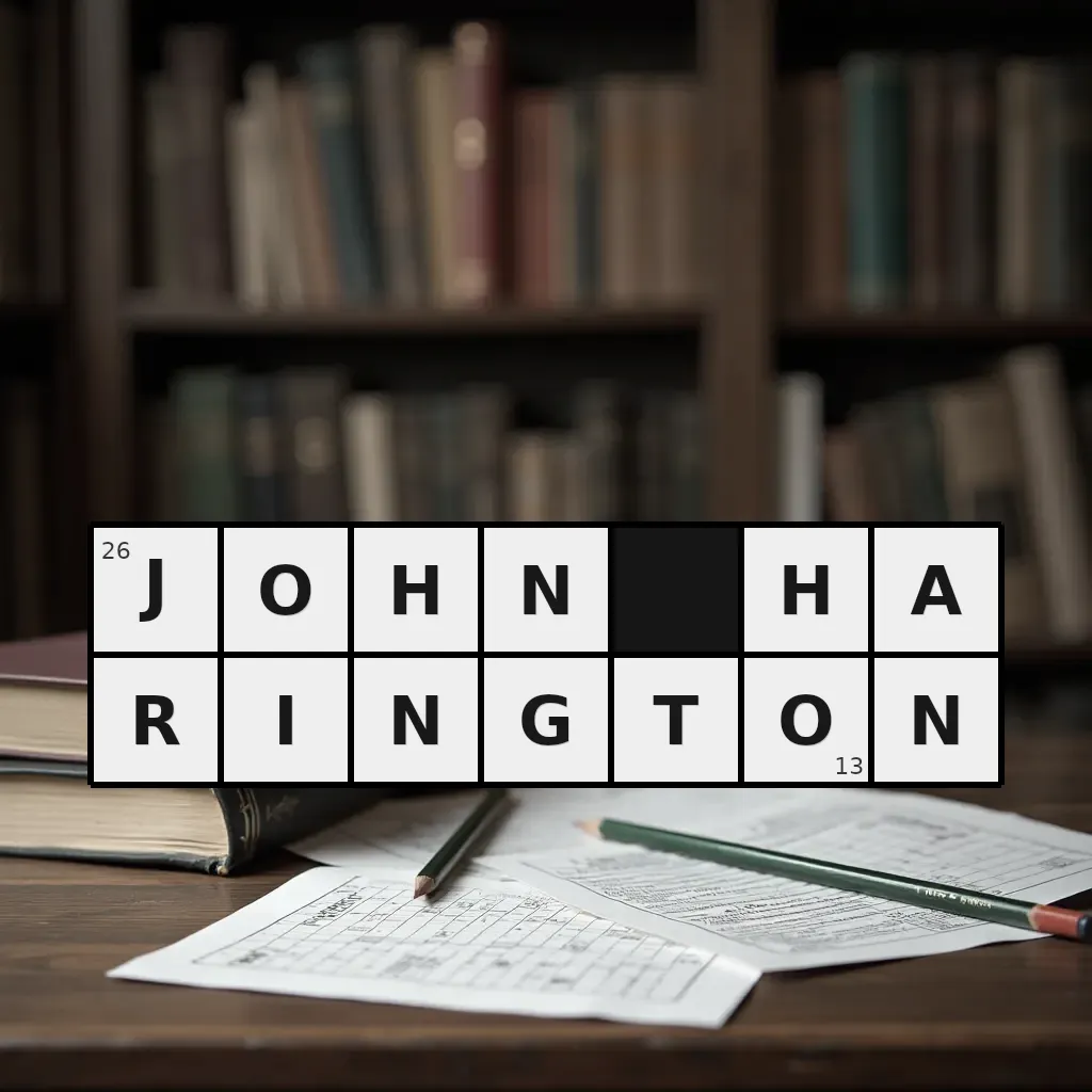 Słowo „john harington” ma 13 znaków (bez spacji i łączników).