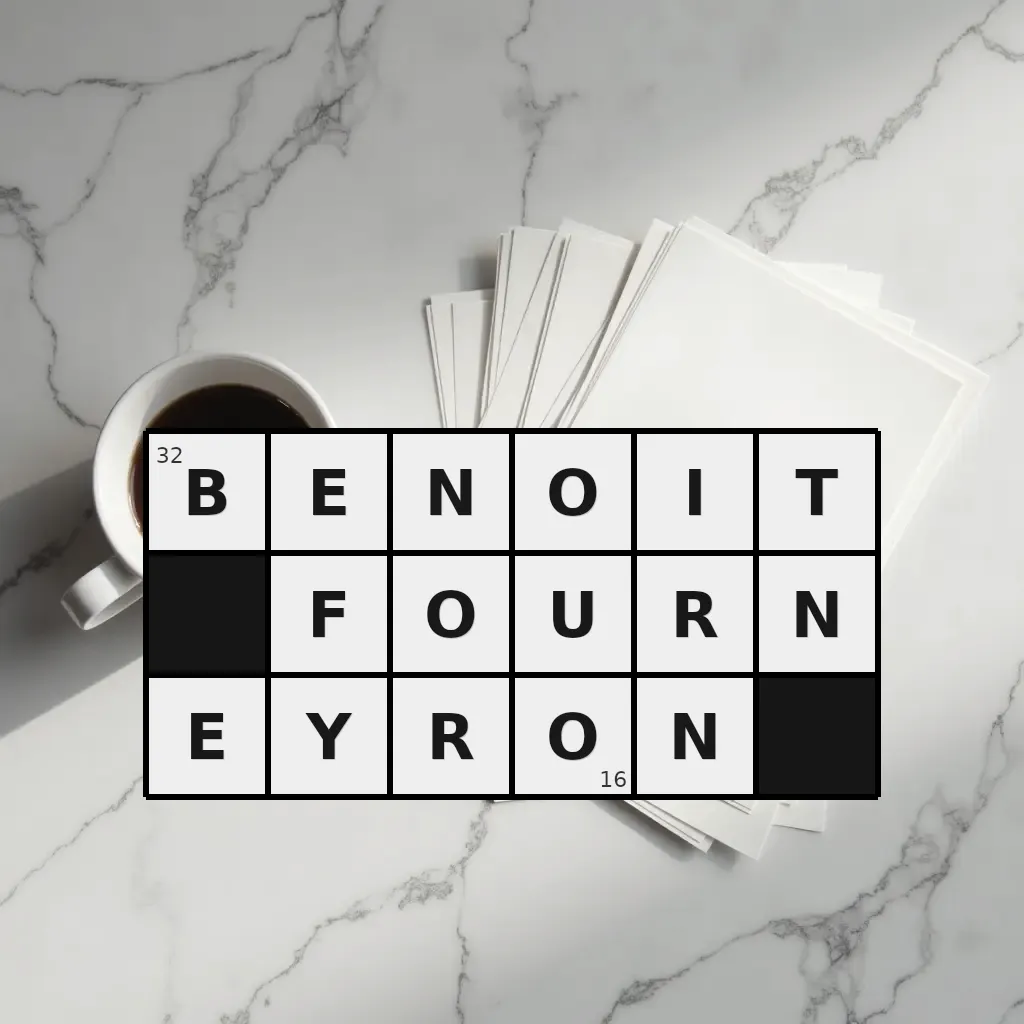 Słowo „benoit fourneyron” ma 16 znaków (bez spacji i łączników).