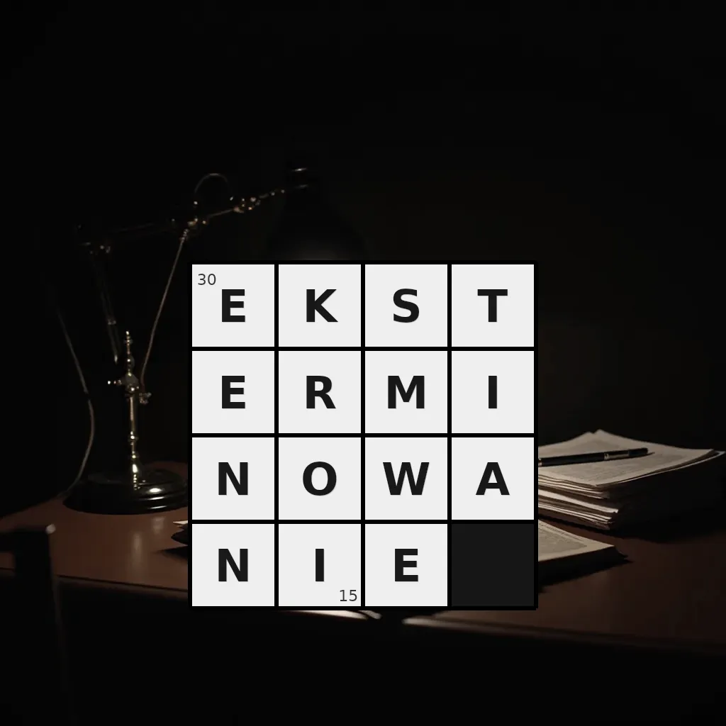 Słowo „eksterminowanie” ma 15 znaków (bez spacji i łączników).
