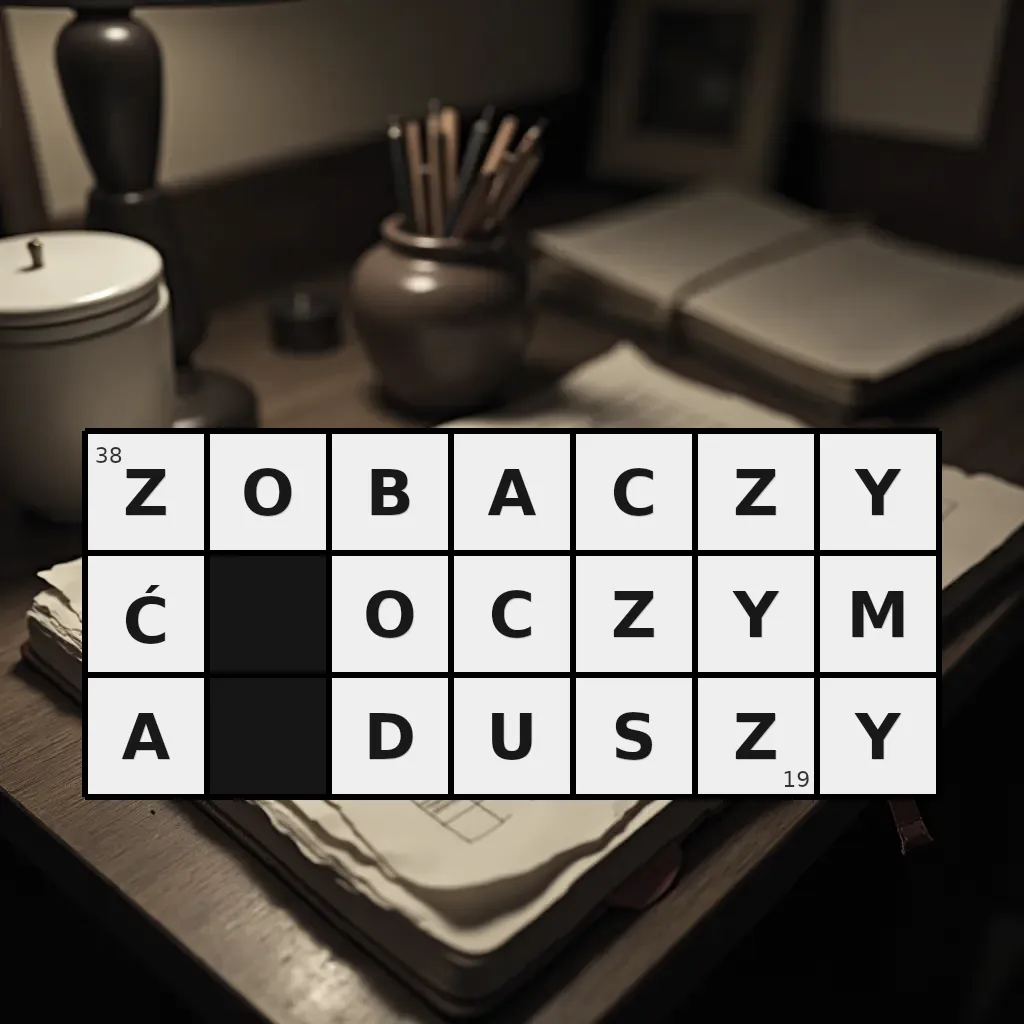 Słowo „zobaczyć oczyma duszy” ma 19 znaków (bez spacji i łączników).