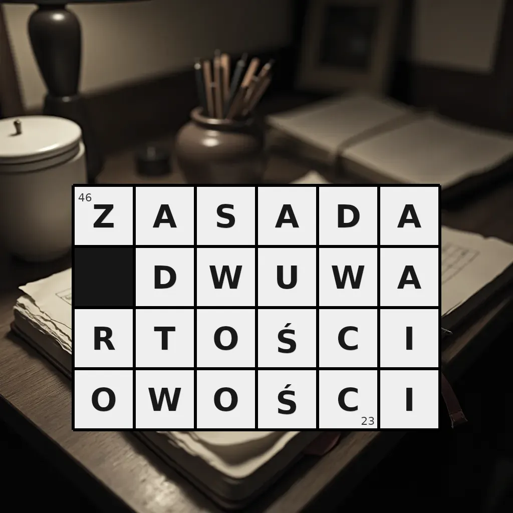 Słowo „zasada dwuwartościowości” ma 23 znaki (bez spacji i łączników).