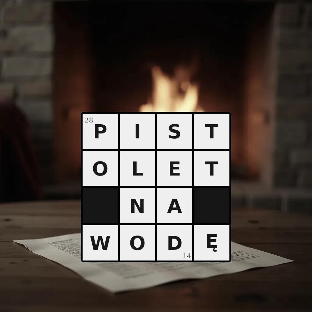 Słowo „pistolet na wodę” ma 14 znaków (bez spacji i łączników).