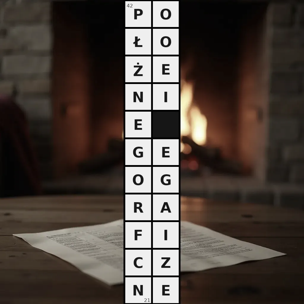Słowo „położenie geograficzne” ma 21 znak (bez spacji i łączników).