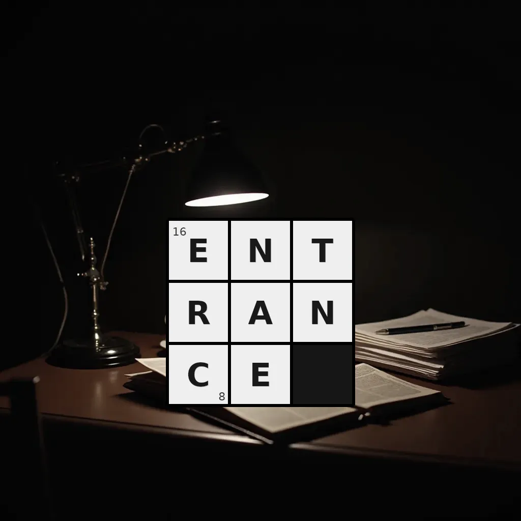 Słowo „entrance” ma 8 znaków (bez spacji i łączników).