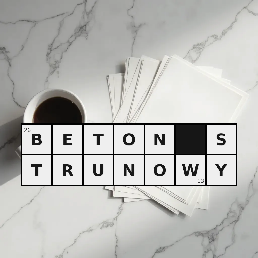 Słowo „beton strunowy” ma 13 znaków (bez spacji i łączników).